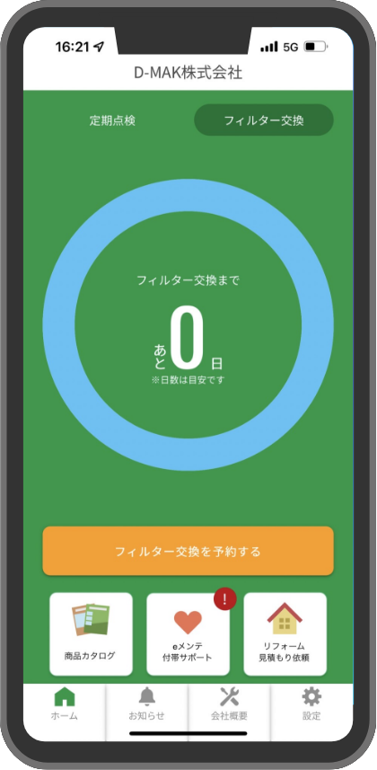 オール浄水器をはじめとした、お家のメンテナンスに関して一括で管理できるアプリです。定期点検、フィルター交換の日数確認、ご予約もアプリから行うことが可能です。是非ご活用ください。